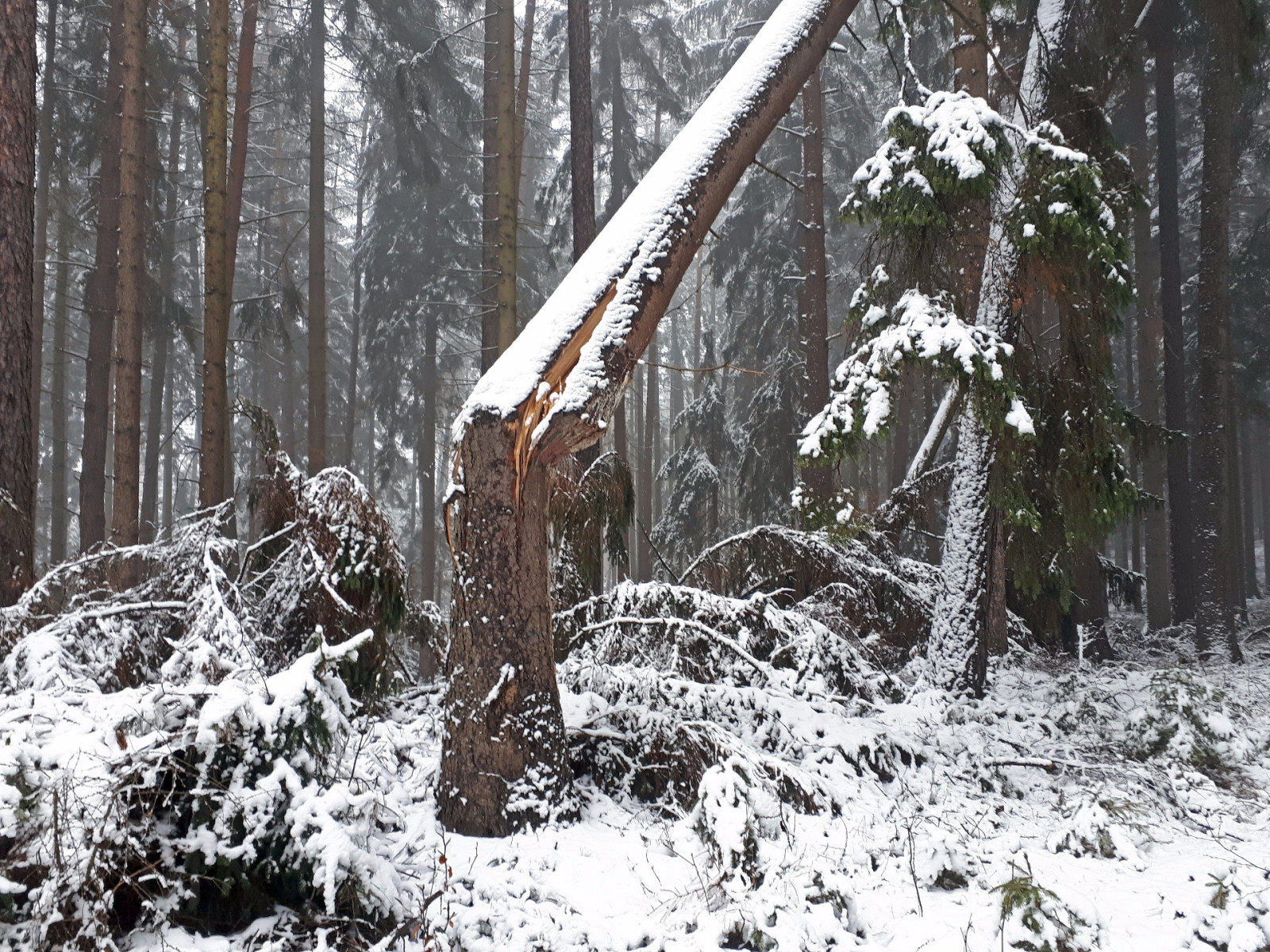 Větrná smr Derecho po 4 měsících